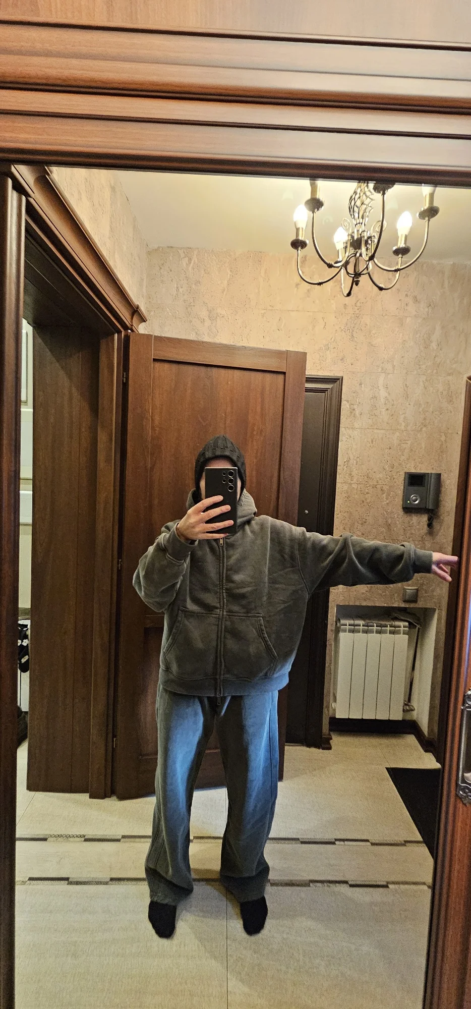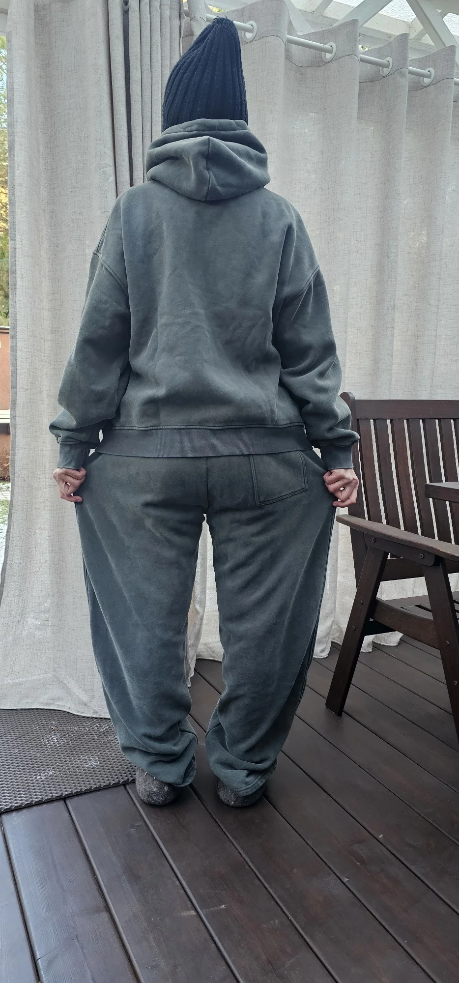 This is not my first purchase from this seller. As usual, everything is of excellent quality. The pants are fire 🔥! Very warm. My height is 164 cm, waist 100 cm. I took size M because I wanted an oversized fit. As a result, there's still some room left. It will also fit a larger hip size. I will hem them because even with the turn-up they are very long for me. Initially, I wanted to order size L, but the seller convinced me that M would be better. Thank you to him for that. The color is dark gray, as in my photo. On the seller's card, it's slightly different. Delivery is very fast.